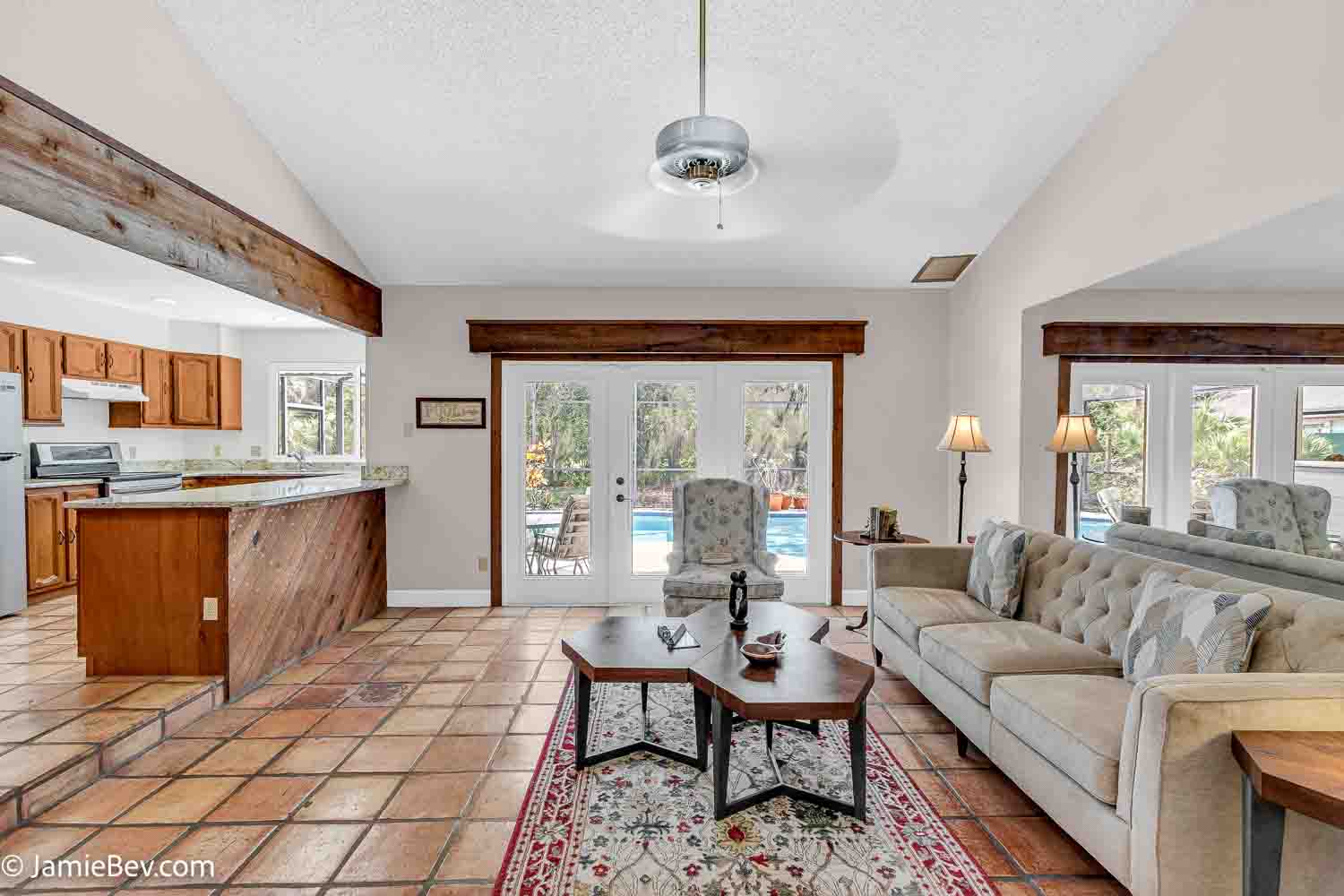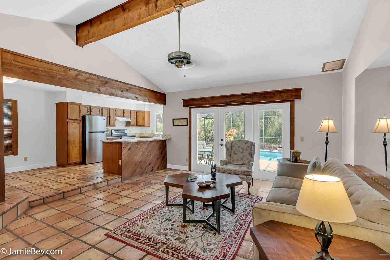 This Oviedo pool home for sale near UCF offers a unique floor plan with 3 bedrooms, 2 bathrooms, and a den, perfect for families, retirees, or anyone seeking a private retreat close to the University of Central Florida. Designed with both character and functionality, the layout features a sunken living room with vaulted wood-beam ceilings and a cozy wood-burning fireplace, plus spacious living areas with timeless terracotta tile floors. The kitchen with granite countertops and a convenient pass-through window to the pool deck makes entertaining effortless, while the private pool and screened outdoor living space create the ideal Florida lifestyle. With no HOA, mature trees, and a quiet conservation setting, this home combines charm, convenience, and value in one of Central Florida’s most desirable locations.